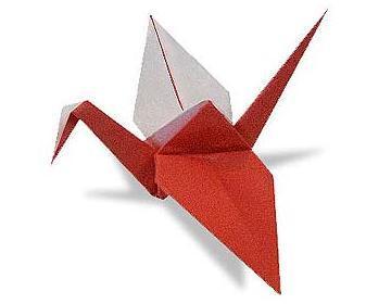 6. 将两个翅膀向外展开,一个可爱的千纸鹤就完成了!